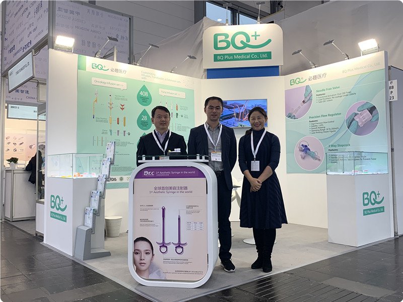 在BQ +品牌創(chuàng)始人的8bp23展位上,曹女士帶領(lǐng)公司負責(zé)歐美市場的銷售團隊如期參加了一年一度的德國醫(yī)藥展,為客戶提供免費的解決方案,技術(shù)解答和樣品。